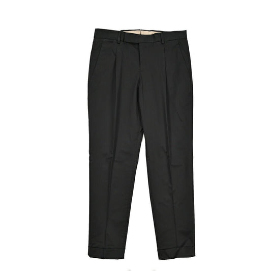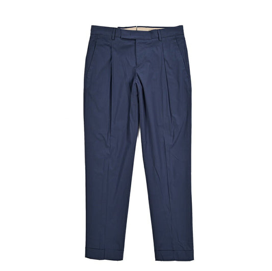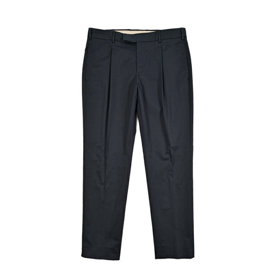 このインプリーツが腰回りに立体的で丸みのあるゆとりを生み出し、そこから足首にかけて強くテーパードする、ダイナミックな「キャロット」シェイプを描き出します。さらに、意図的に設定されたクロップド丈が軽快な雰囲気を与え、足元のシューズを際立たせる効果も。武骨なルーツを持ちながらも、PT TORINOならではの洗練された仕立てで、現代のスタイルに馴染む一本へと昇華されています。