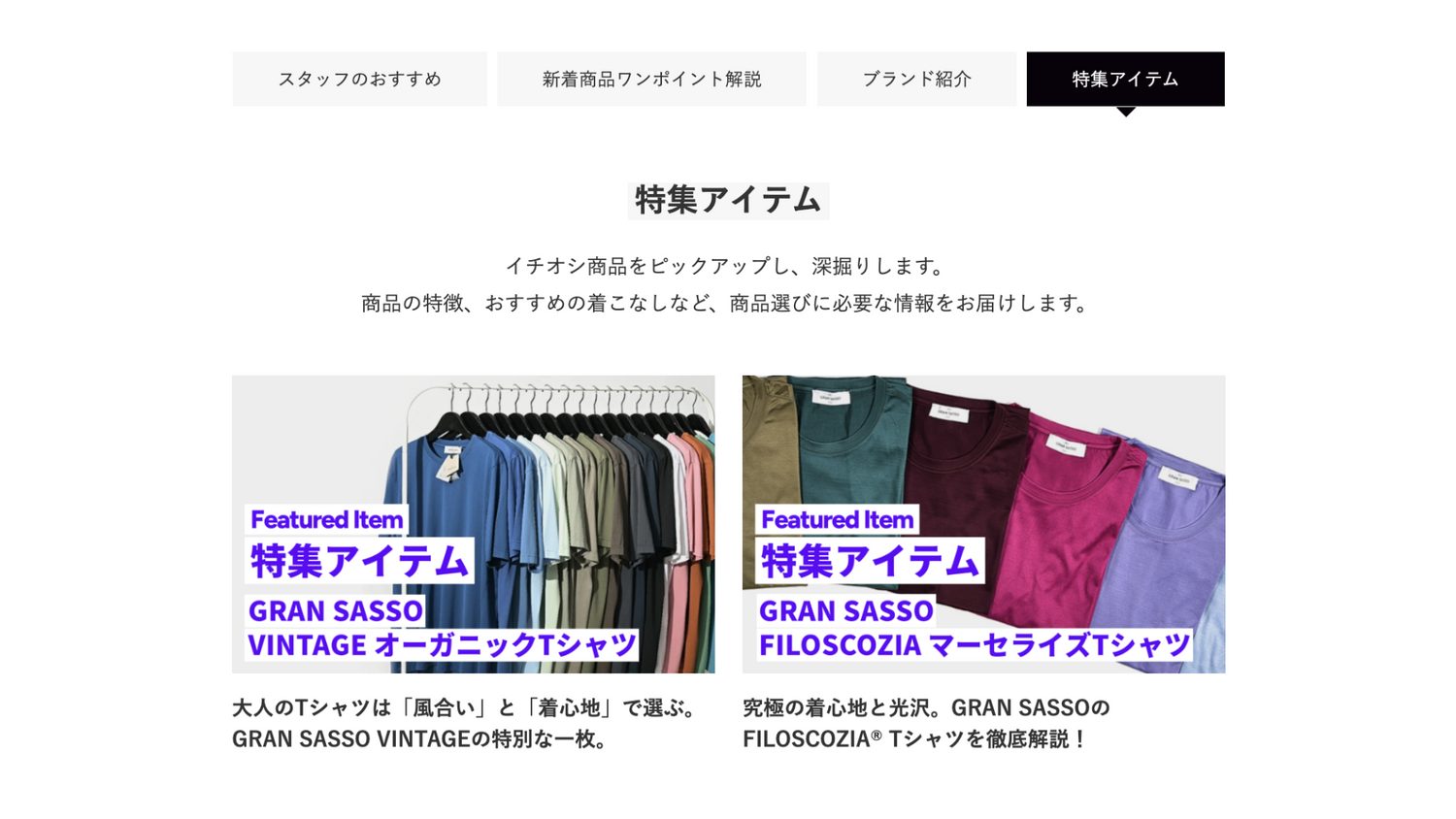 商品の詳細なレビューやブランドの背景にあるストーリーなど、商品選びの参考になる情報を掲載しております。