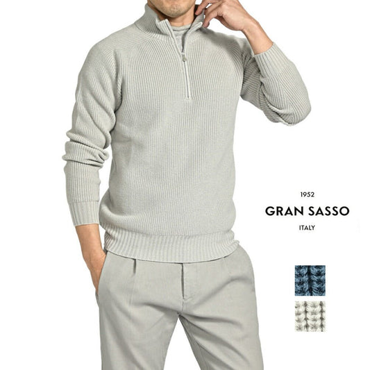 秋冬先行セール|GRAN SASSO ヴァージンウール100% ハーフジップハイゲージニットセーター