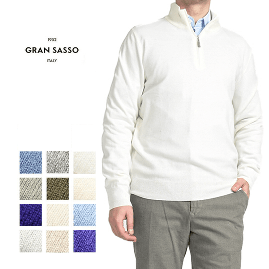 秋冬先行セール|GRAN SASSO ヴァージンウールカシミヤ ハーフジップニットセーター