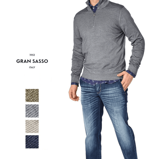 秋冬先行セール|GRAN SASSO ヴァージンウール100% ハーフジップミドルゲージニットセーター