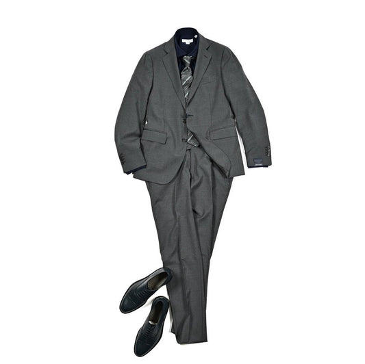 | 袖丈 | 肩の付け根から袖先までの長さ。 (ボタンを外して腕を垂直に伸ばした時、手の甲が半分隠れるくらいが適正サイズの目安です。) |