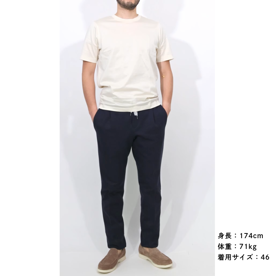 | 備考 | □国内参考価格 57,000円(税抜) □仕様 SOFT FIT ワンタック ジップフライ スラントポケット ドローコード 裾 シングル仕上げ ウエスト シャーリングゴム(伸縮幅8cm程度) ※実寸値はウエストの最小値を表記しております。 |