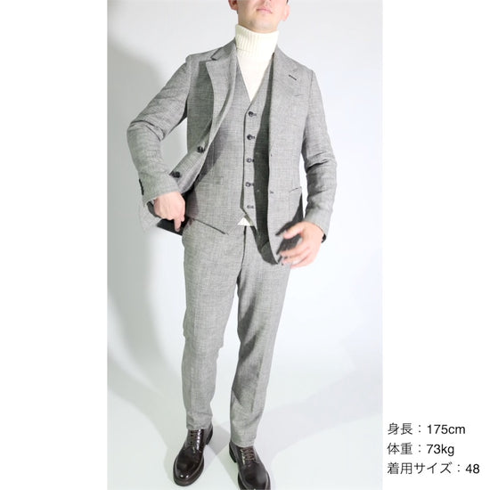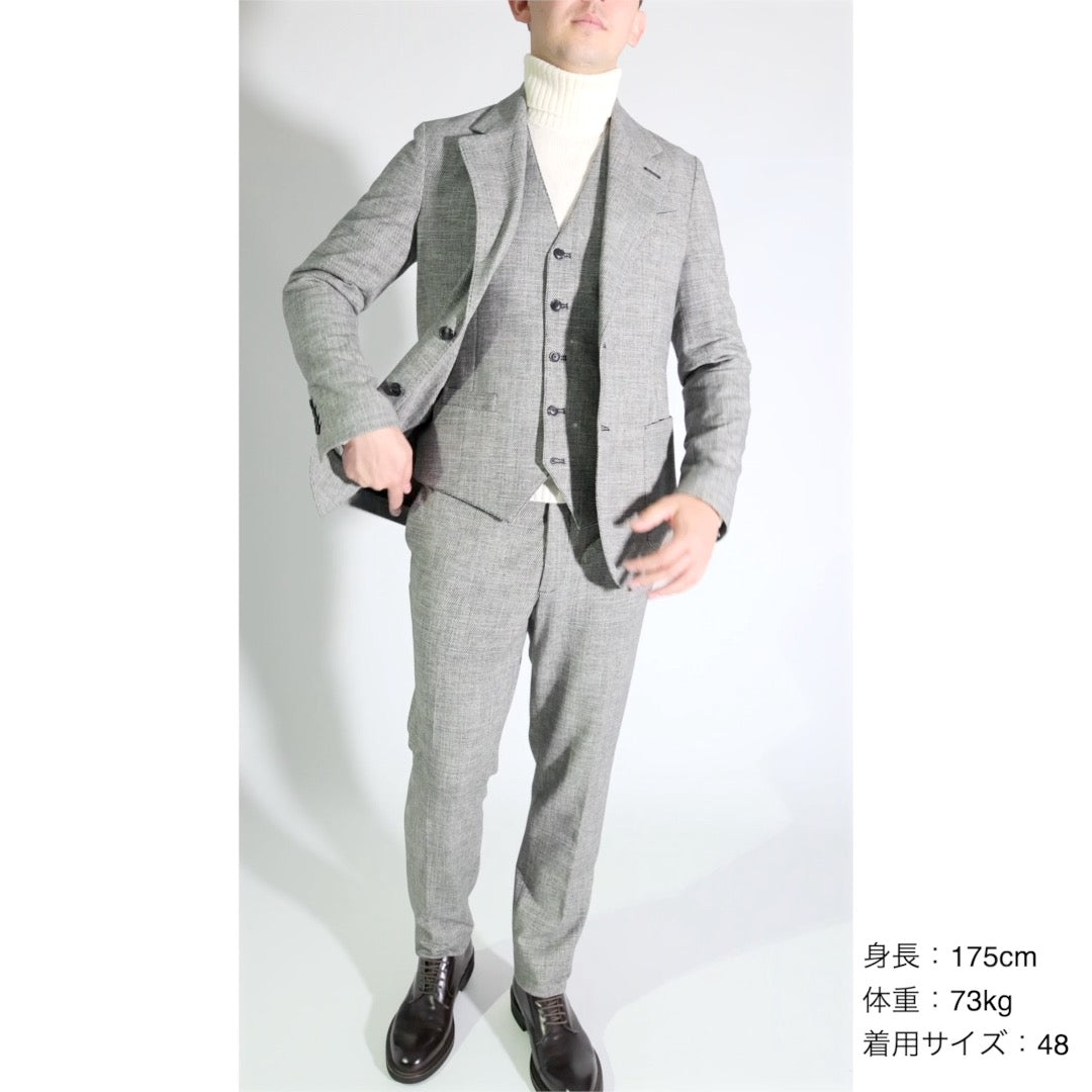 備考 | □国内参考価格 39,000円(税抜) □仕様 2Bシングル ノッチドラペル パッチポケット 内ポケット サイドベンツ 袖 4つ釦眠り切羽 背抜き裏地(袖裏地あり) |