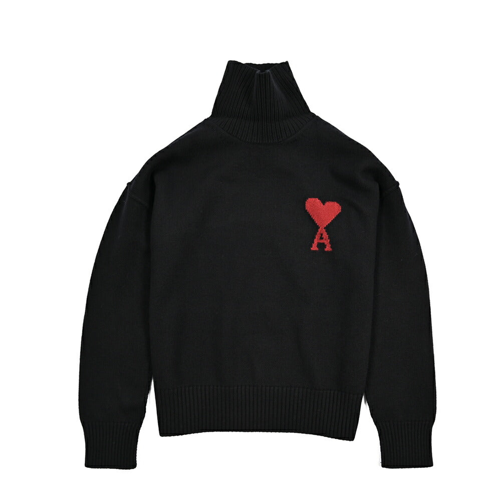 25-26AW AMI PARIS ヴァージンウール100% ワンポイントロゴタートルネックニットセーター