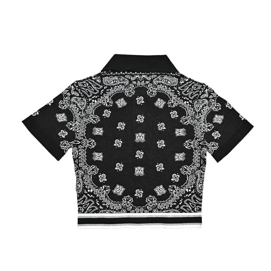 【レディース】AMIRI コットン100% クロップド半袖ニットポロシャツ