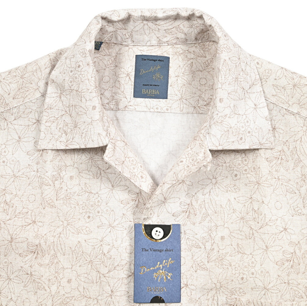 BARBA DANDYLIFE リネン混コットン 半袖オープンカラーシャツ 開襟シャツ