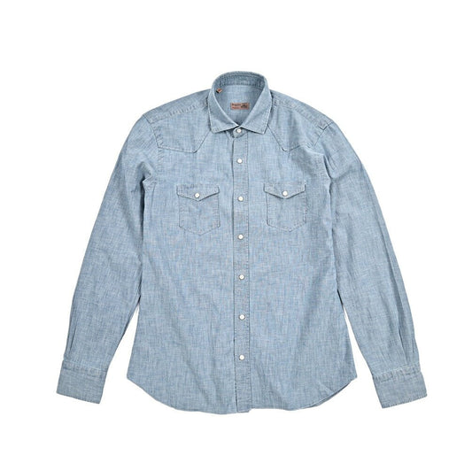 BARBA DANDYLIFE コットン100% ワイドカラーデニムシャツ