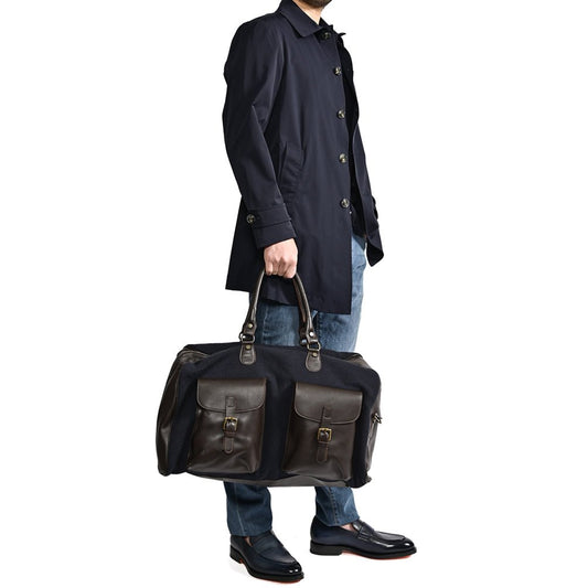 BARBA コットン/レザー 異素材コンビボストンバッグ 2wayウィークエンドバッグ ショルダーストラップ付 / BORSONE