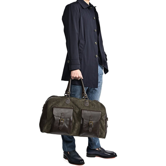BARBA コーデュロイ/レザー 異素材コンビボストンバッグ 2wayウィークエンドバッグ ショルダーストラップ付 / BORSONE